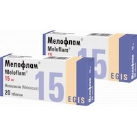 Фармакологическое действиеНПВП, обладает противовоспалительным, жаропонижающим, анальгетическим действием. Относится к классу оксикамов; производное энолиевой кислоты. Механизм действия - ингибирование синтеза Pg в результате избирательного подавления ферментативной активности ЦОГ2. При назначении в высоких дозах, длительном применении и индивидуальных особенностях организма ЦОГ2 селективность снижается. Подавляет синтез Pg в области воспаления в большей степени, чем в слизистой оболочке желудка или почках, что связано с относительно избирательным ингибированием ЦОГ2. Реже вызывает эрозивно-язвенные заболевания ЖКТ. Побочные действияЧастота: часто - более 1%; нечасто - 0.1-1%; редко - 0.01-0.1%; очень редко - менее 0.01%. Со стороны пищеварительной системы: часто - диспепсия, в т.ч. тошнота, рвота, абдоминальные боли, запор, метеоризм, диарея; нечасто - преходящее повышение активности "печеночных" трансаминаз, гипербилирубинемия, отрыжка, эзофагит, гастродуоденальная язва, кровотечение из ЖКТ (в т.ч. скрытое), стоматит; редко - перфорация ЖКТ, колит, гепатит, гастрит. Со стороны органов кроветворения: часто - анемия; нечасто - изменение формулы крови, в т.ч. лейкопения, тромоцитопения. Со стороны кожных покровов: часто - зуд, кожная сыпь; нечасто - крапивница; редко - фотосенсибилизация, буллезные высыпания, многоформная эритема, в т.ч. синдром Стивенса-Джонсона, токсический эпидермальный некролиз. Со стороны дыхательной системы: редко - бронхоспазм. Со стороны нервной системы: часто - головокружение, головная боль; нечасто - вертиго, шум в ушах, сонливость; редко - спутанность сознания, дезориентация, эмоциональная лабильность. Со стороны ССС: часто - периферические отеки; нечасто - повышение АД, сердцебиение, "приливы" крови к коже лица. Со стороны мочевыделительной системы: нечасто - гиперкреатининемия и/или повышение концентрации мочевины в сыворотке крови; редко - острая почечная недостаточность; связь с приемом мелоксикама не установлена - интерстициальный нефрит, альбуминурия, гематурия. Со стороны органов чувств: редко - конъюнктивит, нарушение зрения, в т.ч. нечеткость зрительного восприятия. Аллергические реакции: редко - ангионевротический отек, анафилактоидные/анафилактические реакции. Особые указанияПри возникновении пептических язв или желудочно-кишечного кровотечения, развитии побочных эффектов со стороны кожи и слизистых оболочек препарат следует отменить. У больных с уменьшенным ОЦК и сниженной клубочковой фильтрацией (дегидратация, ХСН, цирроз печени, нефротический синдром, клинически выраженные заболевания почек, прием диуретиков, обезвоживание после больших хирургических операций) возможно появление клинически выраженной ХПН, которая полностью обратима после отмены препарата (у таких пациентов в начале лечения следует мониторировать суточный диурез и функцию почек). При стойком и существенном повышении трансаминаз и изменении др. показателей функции печени препарат следует отменить и провести контрольные тесты. У больных с повышенным риском побочных эффектов лечение начинают с дозы 7.5 мг. В терминальной стадии ХПН у пациентов, находящихся на диализе, доза не должна превышать 7.5 мг/сут. В период лечения необходимо соблюдать осторожность при управлении транспортными средствами и занятии др. потенциально опасными