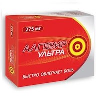 Фармакологическое действиеНПВП, оказывает противовоспалительное, анальгезирующее и жаропонижающее действие, связанное с неселективным подавлением активности ЦОГ1 и ЦОГ2, регулирующих синтез Pg. Побочные действияНПВП-гастропатия (поражение антрального отдела желудка в виде эритемы слизистой оболочки, кровоизлияний, эрозий и язв). Тошнота, рвота, дискомфорт в эпигастрии, кожная сыпь, крапивница, ангионевротический отек; головная боль, сонливость, шум в ушах, головокружение, слабость, замедление скорости реакции; эрозивно-язвенные поражения др. отделов ЖКТ, кровотечения и перфорации ЖКТ; эозинофильная пневмония; тромбоцитопения, гранулоцитопения, апластическая анемия, гемолитическая анемия; снижение слуха, нарушение функции почек или печени. Особые указанияПри необходимости определения 17-кетостероидов препарат следует отменить за 48 ч до исследования. Необходимо контролировать функции печени и почек, состав периферической крови. Следует учитывать, что напроксен увеличивает время кровотечения. Для снижения риска развития нежелательных явлений со стороны ЖКТ следует использовать минимальную эффективную дозу минимально возможным коротким курсом. ВзаимодействиеПри одновременном назначении может вызвать уменьшение диуретического эффекта фуросемида; усиление эффекта непрямых антикоагулянтов. Повышает токсичность фенитоина, сульфаниламидов, метотрексата (блокирует канальцевую секрецию). Снижает гипотензивный эффект бета-адреноблокаторов. Снижает выведение Li+ и увеличивает его концентрацию в плазме. Антацидные ЛС, содержащие Mg2+ и Al3+, уменьшают абсорбцию напроксена. Миелотоксичные ЛС усиливают проявления гематотоксичности препарата. Наличие препарата Алгезир Ультра*Препарат отсутствует в представленных аптеках, в наличии имеются аналоги (заменители), применение которых должно быть обязательно лично согласовано с лечащим врачом: